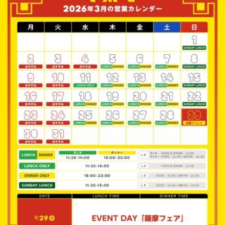 マーポー亭の営業カレンダーは後ほど更新します。